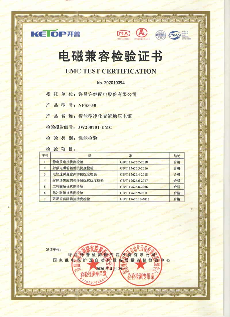 智能凈化穩(wěn)壓電源測試17626.5報告 證書JW191741